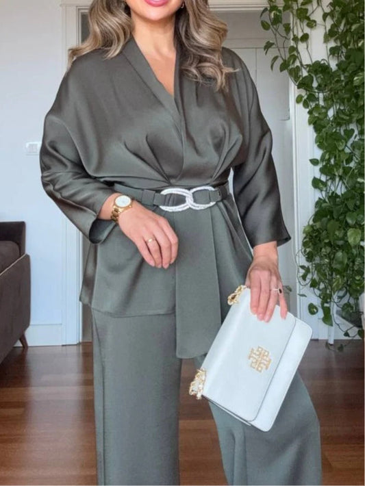 Save £90.05Casual V-Neck Top & Trousers Two-Piece Set